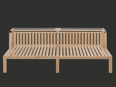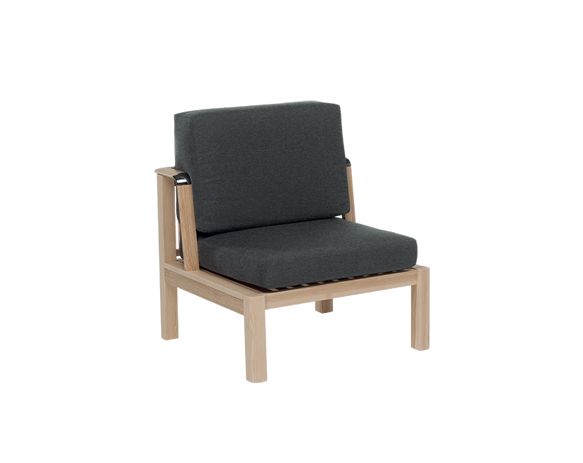 Comfortable and spacious armchair, in ash wood with chrome-plated aluminium fittings. Comfortable cushions included with removable covers for the backrest and seat. Can be combined with sofa 305.