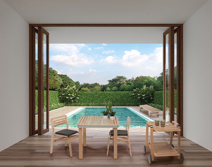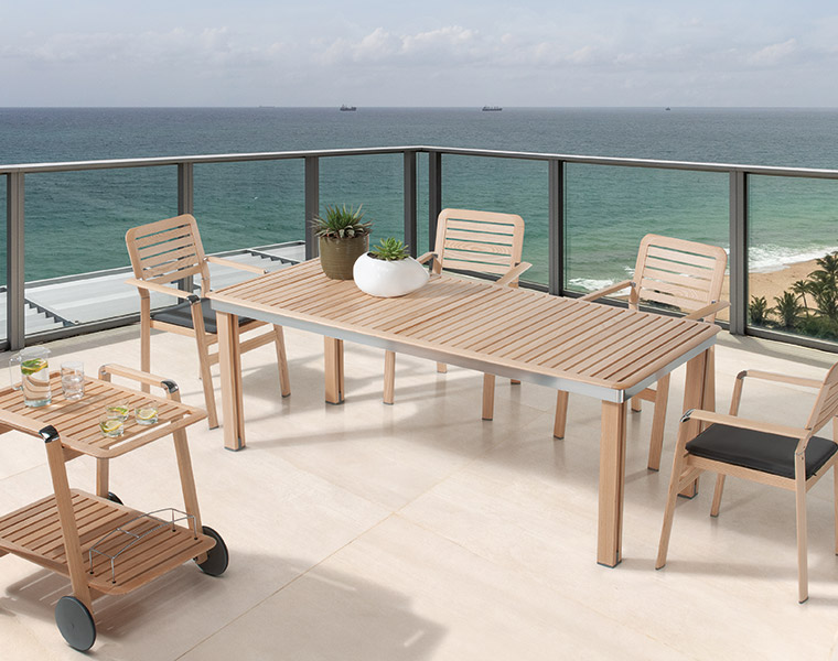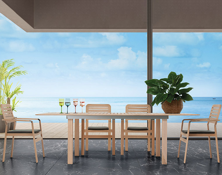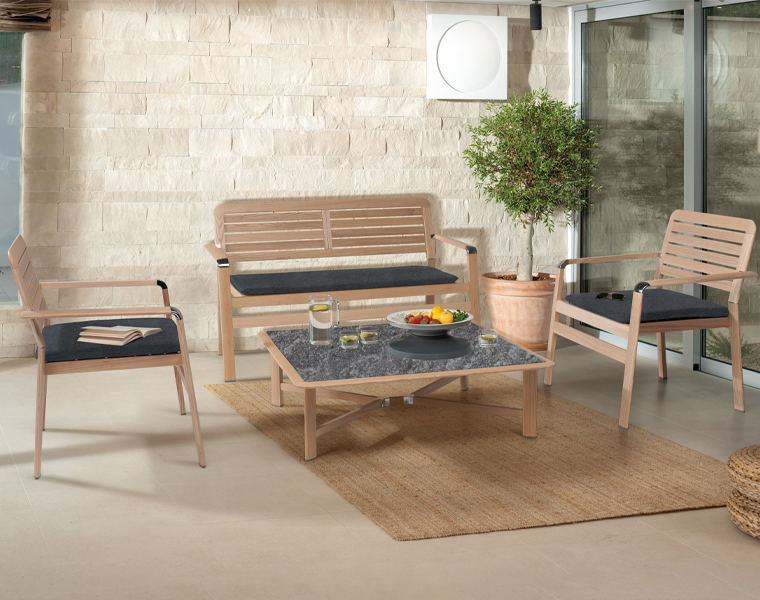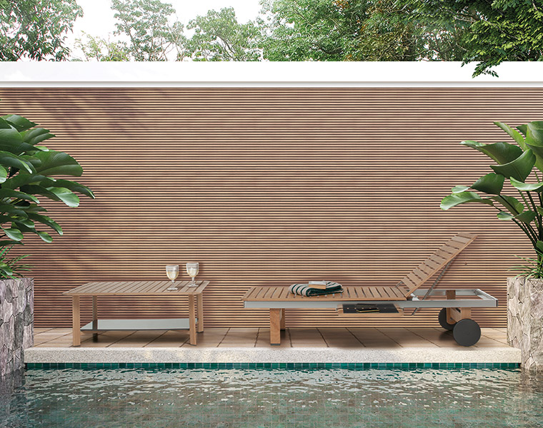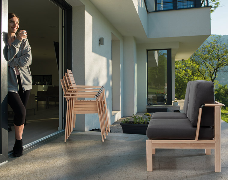 Iconica è una linea di arredamento outdoor che accosta al pregiato legno di frassino verniciato all’acqua, materiali innovativi come l’HPL e l’alluminio.